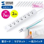電源タップ 延長コード 2m コンセント タップ テーブルタップ マグネット 固定 抜け止め 雷ガード 3ピン 3P 一括スイッチ 節電 7個口 10個セット 700-TAP035--10