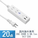20点セット YAZAWA 国内海外兼用タップ 2個口+USB1ポート +TypeC 1ポート 3.9A 1m VFC39A2AC1C