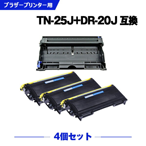 【期間限定★10%OFFクーポン!】 TN-25J×3 + DR-20J×1 お得な4個セット ブラザー 互換 トナー / ドラム (TN-25 DR-20 HL-2040 TN 25J DR 20J TN25J DR20J MFC-7420 MFC-7820N DCP-7010 FAX-2810 FAX-2810N HL2040 MFC7420 MFC7820N DCP7010 FAX2810 FAX2810N)