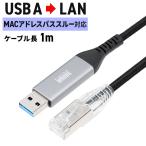USB LAN 変換ケーブル 1m カテゴリ6 1Gbps USB-A to LAN MACアドレス パススルー機能 対応 挿すだけ 簡単接続 細い スリム メッシュ ケーブル 500-LAN6KASL01