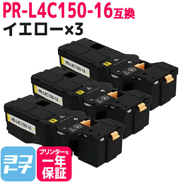 ★月末月初10%OFFクーポン★【即納/大容量】PR-L4C150 NEC(エヌイーシー) イエロー×3セット互換トナーカートリッジ 内容:PR-L4C150-16 対応機種:Color MultiWriter 4C150(PR-L4C150) Color MultiWriter 4F150(PR-L4F150) 宅配便で送料無料【互換トナー】