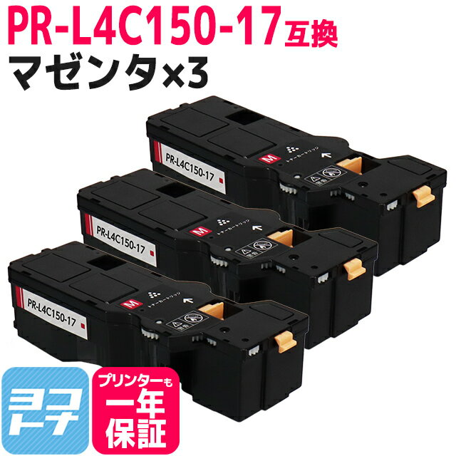 ★月末月初10%OFFクーポン★【即納/大容量】PR-L4C150 NEC(エヌイーシー) マゼンタ×3セット互換トナーカートリッジ 内容:PR-L4C150-17 対応機種:Color MultiWriter 4C150(PR-L4C150) Color MultiWriter 4F150(PR-L4F150) 宅配便で送料無料【互換トナー】