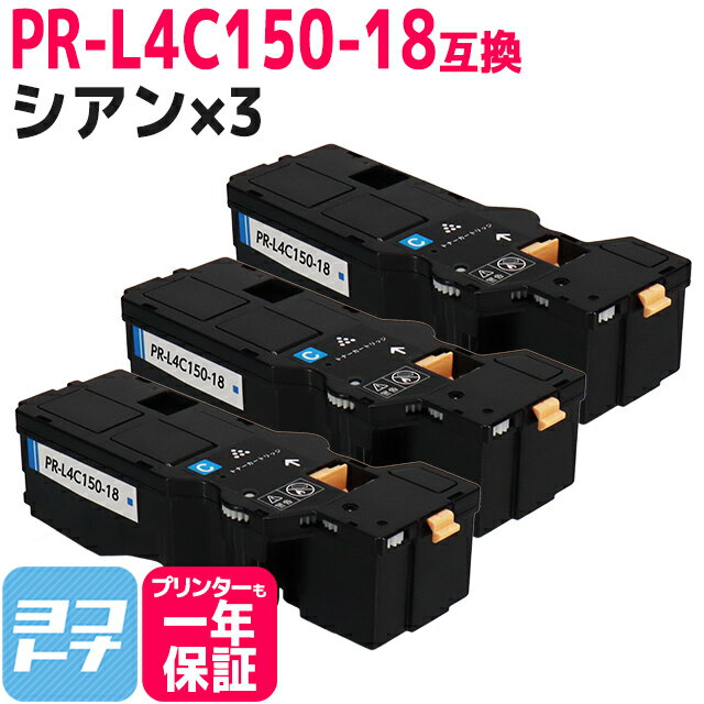 ★月末月初10%OFFクーポン★【即納/大容量】PR-L4C150 NEC(エヌイーシー) シアン×3セット互換トナーカートリッジ 内容:PR-L4C150-18 対応機種:Color MultiWriter 4C150(PR-L4C150) Color MultiWriter 4F150(PR-L4F150) 宅配便で送料無料【互換トナー】