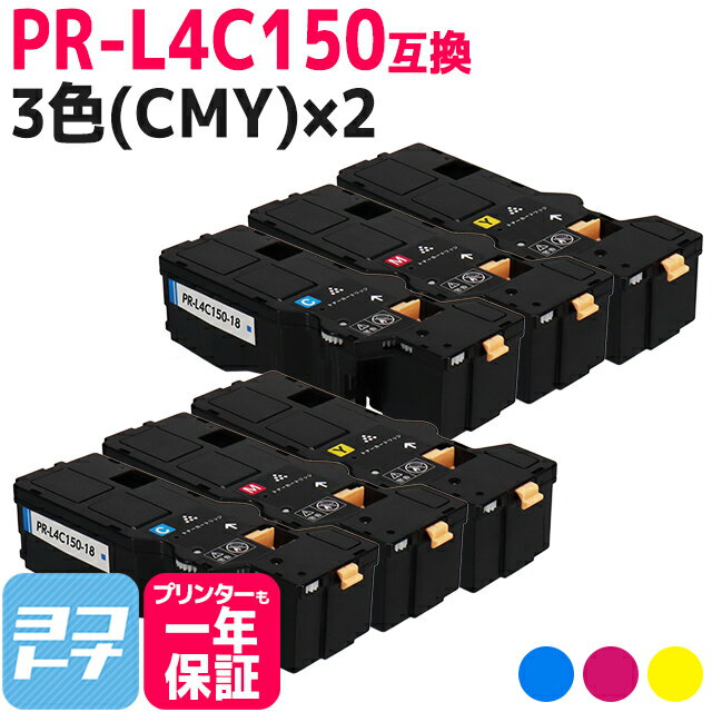 ★月末月初10%OFFクーポン★【即納/大容量】PR-L4C150 NEC(エヌイーシー) 3色(CMY)×2セット互換トナーカートリッジ 内容:PR-L4C150-18 PR-L4C150-17 PR-L4C150-16 対応機種:Color MultiWriter 4C150(PR-L4C150) Color MultiWriter 4F150(PR-L4F150)