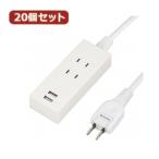 YAZAWA 20個セット 2AC2USB2.1A1.5mホワイト Y024015WH2UX20 家電 生活家電 OAタップ[▲][AS]