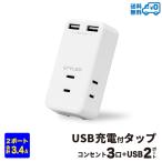 メール便送料無料 STYLED USB充電付 電源タップ コンセント×3口 USB×2ポート 合計3.4A OAタップ ホワイト HMTWC3234-W