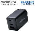 エレコム ノートPC用 ACアダプター USB Power Delivery 67W AC充電器 C×2+A×1 ノートPC用ACアダプター USB充電器 スイングプラグ ブラック ACDC-PD10367BK