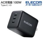 ELECOM MPA-AC113100BK ノートPC用ACアダプター/ USB充電器/ USB PD/ 100W/ USB-C×3/ スイングプラグ/ ブラック