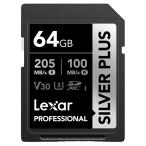 SDカード 64GB SDXC Lexar レキサー Professional SILVER PLUS Class10 UHS-I U3 V30 R:205MB/s W:100MB/s 海外リテール LSDSIPL064G-BNNNG ◆メ