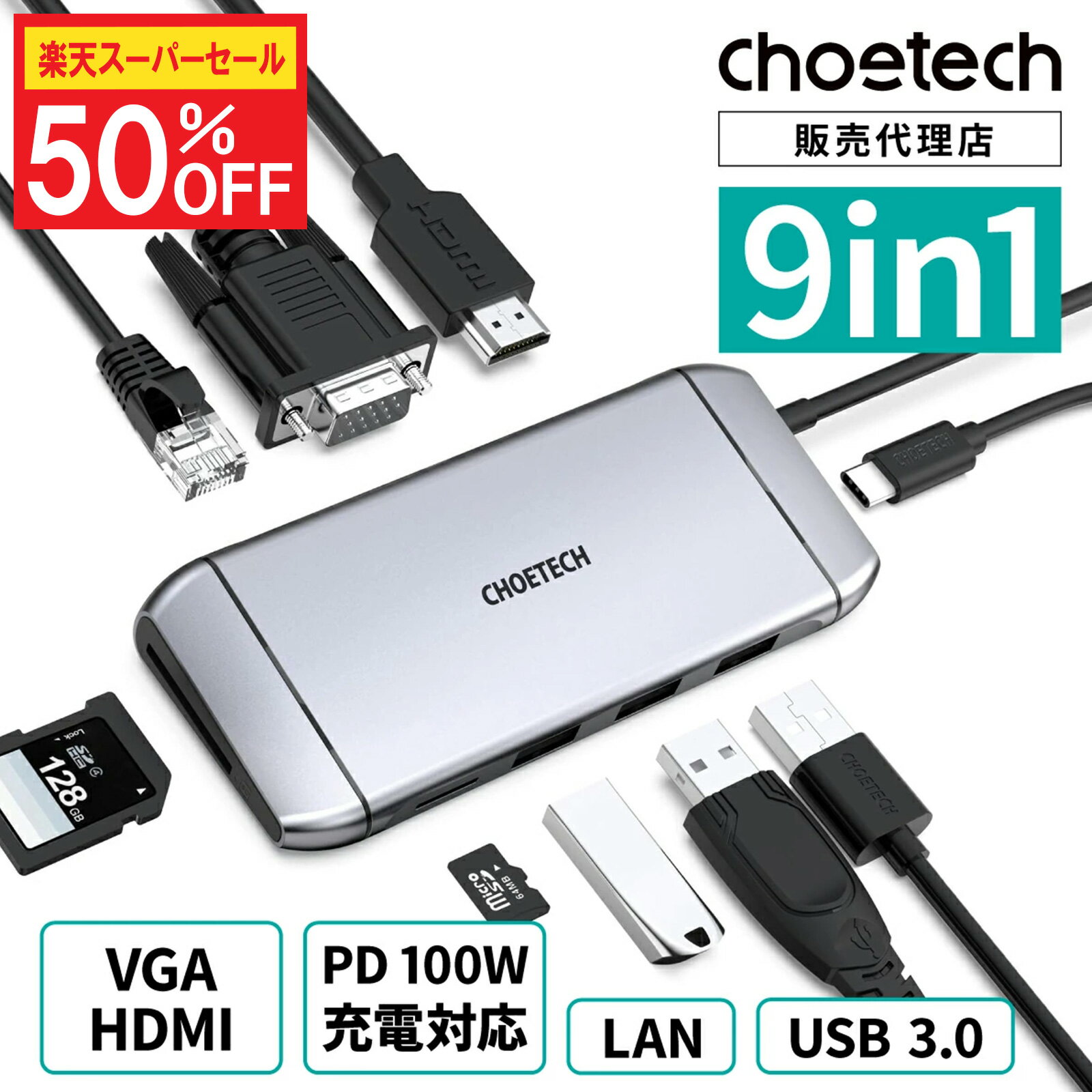 【楽天SS 50%OFF】CHOETECH ハブ 9-In-1 HUB-M15 USB-C Type-C 1000Mbps LANポート HDMI USB 3.0ポート 高速データ転送 Thunderbolt