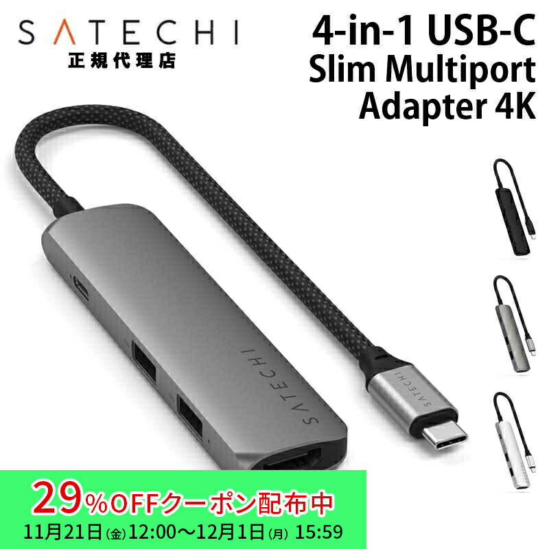 [29%OFFクーポン 12/1夕方まで]Satechi 4-in-1 USB-C Slim Multiport Adapter 4k (4-in-1 USB-C スリムマルチポートアダプター 4k) 全3色 PST-P4Sシリーズ サテチ ドッキングステーション 拡張 HDMI MacBook USBハブ iMac iPhone iPad windows 2年保証