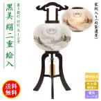 盆提灯 コンパクト ちょうちん 提灯 初盆 家紋入り 九寸丸 黒塗絹無地 LED コードレス 二重張り スタンド付 手書き うすずみ 濃墨 家紋代込 送料無料 2023