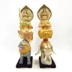 仏像 文殊菩薩(獅子座) 普賢菩薩(象座合掌形) 一対 3.5寸 宝珠光背 桧木淡彩色