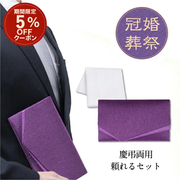 【期間限定★5%offクーポン】 ふくさ 慶弔両用 紫 ちりめん お葬式 結婚式 女性 男性 服紗 袱紗 金封 祝儀袋 香典 ハンカチ セット Kugusa