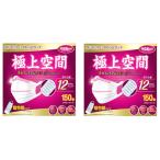 【2箱セット】極上空間 小さめサイズ 4層 プレミアムマスク 150枚×2箱 個包装 計300枚 約15.5×9.5cm ワイヤー 不織布 使い捨て マスク 花粉 63002