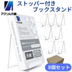 アクリル本舗 ストッパー付き ブックスタンド 8個セット アクリルスタンド ディスプレイスタンド レッジ付き イーゼル 写真 本 書類 CD 同人誌 立て 展示 透明