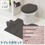 トイレ5点セット マット(55×60cm) 両面フタカバー 洗浄便座カバー ペーパーホルダーカバー トイレスリッパ /カラーショップ チャコールグレー