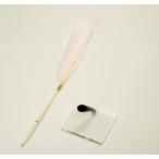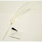 日本加工ガチョウの羽根付プラ軸バンカースペン+黒ペンホルダー付透明アクリルペンス