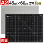 カッティングマット A2 サイズ 45cm x 60cm x 3mm 1cm方眼 特大 両面メモリ 業務用 工作 カッターマット デスクマット ブラック / グレー 両面目盛り 切り出し