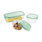 イワキ PS-PRN-3G2 パック&レンジ 角型 3点セット グリーン 耐熱ガラス 保存容器 iwaki