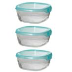 耐熱ガラス製保存容器・角600 3個セット アクアブルー ×8セット