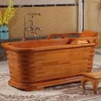 屋内バスルーム用の自立した木製バスタブ、スパセンターソリッドウッドスタンド単独の浴槽椅子とポップアップドレイン、手すりのあるコンテンポラリーの浸漬木製