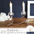 LEDろうそく 2本 セット クリアー キャンドルスタンド付 電池式 火を使わない 電子 ろうそく立て ホルダー おしゃれ 安心 安全 火災予防