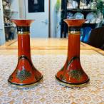 オールドノリタケ アールデコ様式 朱地薔薇籠紋 燭台ペア キャンドルスタンド
