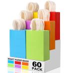 XPCARE ペーパーギフトバッグ 60枚 6色 クラフト紙 パーティー景品バッグ バルクハンドル付き 子供用 誕生日 ベビーシャワー クラフト 結婚式 パーティー用品 (6