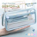 ペンケース 筆箱 ペン入れ 文房具入れ 大容量 クリア 透明 無地 ポーチ 長方形 スクエア ファスナー付き 学生 メンズ レディース シンプル