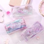 ペンケースペンポーチ筆箱文房具大容量ラメ入りねこネコ猫クリア大きめスクエア文具ペン入れ可愛い女の子学生学校