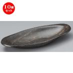 10個セット ☆ 信楽焼陶板 ☆ 黒釉12.0耐熱楕円鉢 [ 355 x 155 x 55mm ] 【料亭 旅館 和食器 飲食店 業務用 】