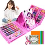 Okiki お絵描きセット【よくより発色対策・2022正規品】 208ピース お絵かきセット 色鉛筆 クレヨン 固形水彩 アートセット 塗り絵 お絵