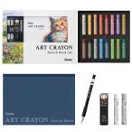 ぺんてる クレヨン アートクレヨン 16色セット 単色ホワイト/グレー シャープ・替芯 セット スケッチブック/描き方ガイド付き PTAC-16ST1