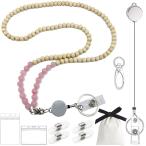 Yisinar 先生用ストラップ IDバッジ用 格納式木製ビーズストラップホルダー かわいい鍵 キーチェーン ボーホー IDホルダー ストラップ (ピンククリスタル)