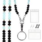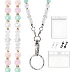 IDバッジとキー用ストラップ、女性用ビーズストラップ、天然石、IDホルダー付きかわいい先生用ストラップ、クルーズシップカード用ストラップパーソナライズラン