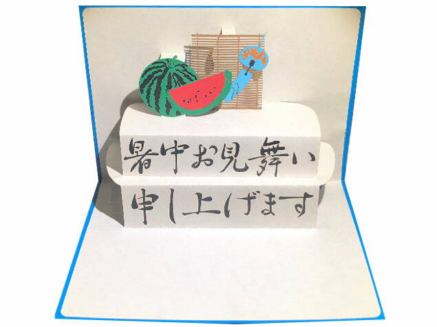 ポップアップグリーティングカード 暑中見舞い+スイカ ブルー