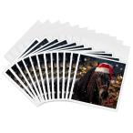 3dRose, Photo of a Christmas scene with a Friesian horse wearing a Santa hat., 12 Greeting Cards with envelopes