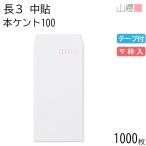 [ケース販売] 山櫻 封筒 長3 中貼 本ケントCoC 紙厚100g テープ付 〒枠入 1,000枚 / A4三折用 グット 白 無地 郵便番号枠あり 00563027-1000