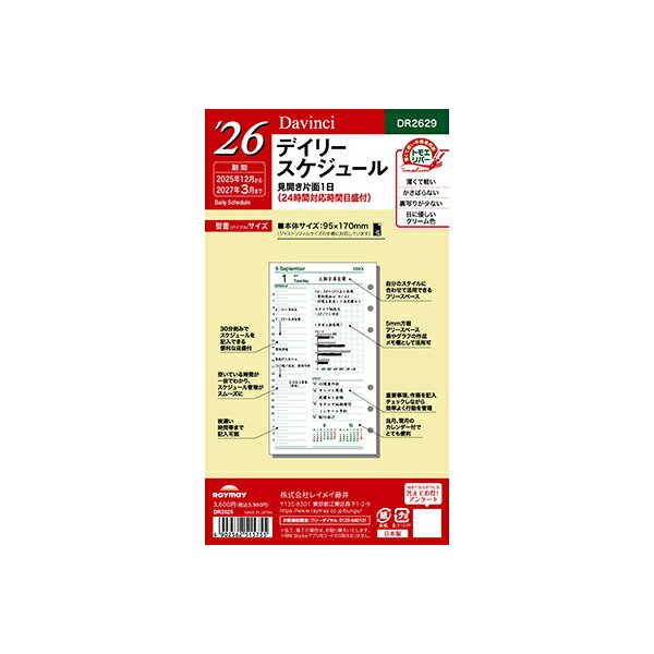 レイメイ藤井 システム手帳リフィル 2026年 ダ・ヴィンチ DR2629 聖書 デイリー リフィル レフィル スケジュール帳 ビジネス手帳 ダイアリー システム手帳 Raymay Davinci Refill ダヴィンチ バイブル バイブルサイズ