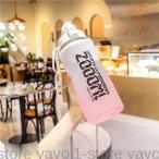 磨りガラス ウォーターボトル 水筒 500ml 大容量 グラス ボトル ワンタッチ ストロー付き スリム 持ち運び便利 直飲み 耐熱 軽量
