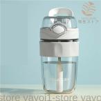 水筒 透明 ガラスボトル ストロー付き ワンタッチオープンタイプ ウォーターボトル ガラス 440ml 直飲み ボトル すいとう スポーツ