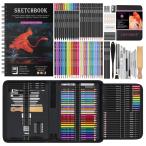 スケッチ鉛筆 デッサン鉛筆 50点セット 3色スケッチブック付き 収納ポーチ付き デッサン鉛筆 紙ペン 消しゴム 鉛筆ケース 紙ヤスリ 素描 美術 美術系学生 カッター 図面 鉛筆削り 筆箱 画材セット プレゼントに大人気!