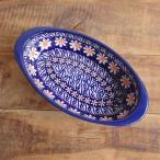 ポーランド食器 ポーリッシュポタリー グラタン皿 持ち手付き オーバルボウル ネイビー 白 マーガレット 花柄 ガーベラ P149-ALC5