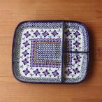 ポーリッシュポタリー ポーランド食器 ランチプレート 仕切り付き 21cm 角皿 ネイビー 花柄