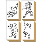 スタンプ かわいい はんこ 木製 ゴム印 セット 鳥獣戯画 おもしろ文具 蛙 カエル 兎 うさぎ 付箋 カード 日本製 プレゼント (49)