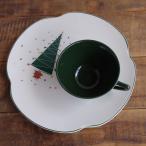 ヴィンテージ食器 レトロ クリスマスツリー モーニングセット カップ プレート 陶器 グリーン スナックセット #230902-6