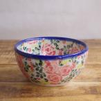 ポーランド食器 ポーリッシュポタリー ボウル 13cm 小どんぶり ピンク 薔薇 花柄 ローズ v071-u625 ボレスワヴィエツ陶器 Boleslawiec かわいい