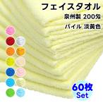 タオル フェイスタオル ソフトタオル 淡黄色 60枚セット 200匁 総パイル 日本製 まとめ買い 泉州製 薄手 無地 綿100%