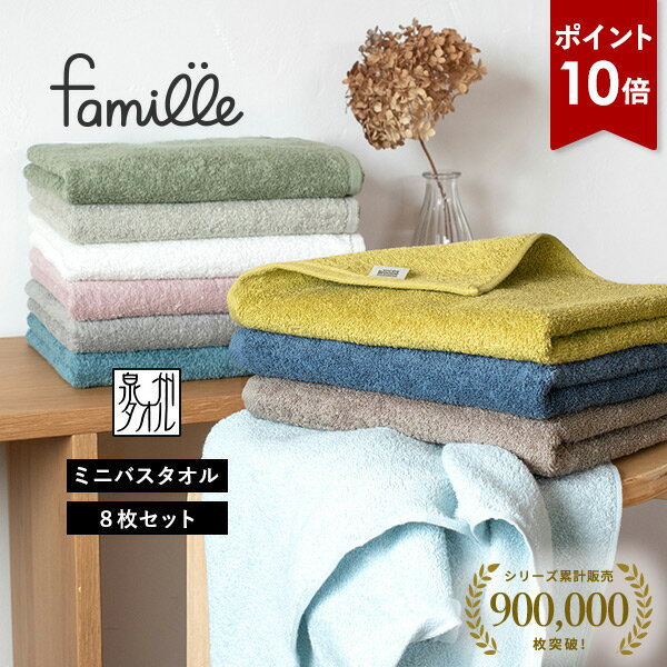 【ポイント10倍★26日8:59まで】ミニバスタオル 8枚セット ファミーユ ホテルタイプ 日本製 泉州タオル タオル 送料無料 (宅配) 楽天1位獲得 まとめ買い セット スポーツタオル 小さめバスタオル 大きめフェイスタオル 大判 福袋 ビッグフェイスタオル